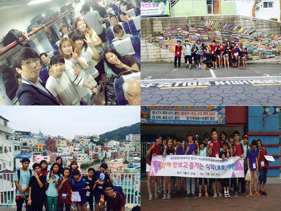 청소년멘토링 ‘민들레’는 성산종합사회복지관 청소년멘토링 프로그램에 참여하는 청소년들의 모임입니다. 민들레는 한 학기 동안 자치회의, 활동 공간 꾸미기, 체육대회, 인문학 강의로 바쁜 시간을 보냈습니다. 여름방학 기차여행은 안동, 대구, 부산을 둘러보는 2박3일 일정으로 홍익대학교 P.A.P.A동아리 자원교사들이 함께해 주었습니다. 이번 여행은 청소년들이 직접, 계획하고, 실행한 여행으로 청소년들에게도 의미가 큰 여행이었습니다.