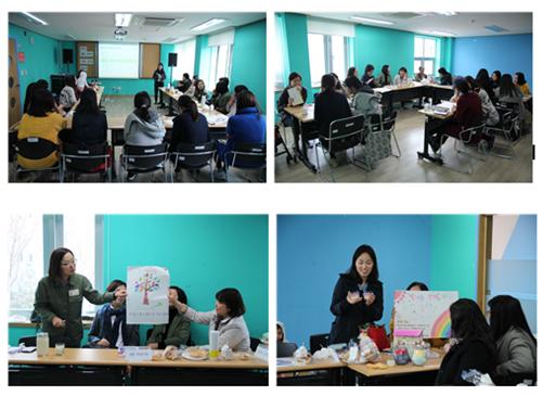 소모임(‘꽃보다 맘‘ 동아리) 발대식에는 '사총사', '빛나는 보석들', '엄마랑 유아랑', '여섯짤 어린이들', '행복맘 세상' 등 총 5개의 동아리, 20여명의 출산육아기 여성들이 함께 하였습니다. 1년 간의 활동 계획을 공유하고 각 팀의 색을 표현하는 시간을 가짐과 동시에 일상에 지친 엄마들을 위한 힐링타임, 앞으로 어떻게 소통하고 나눌 것인가에 대한 결심을 나누는 시간이 되었습니다. 은은한 음악에 눈시울이 붉어지기도 하고, 우리 가족이 아닌 다른 누군가에게 나의 재능이, 나의 시간이 나누어질 수 있다는 것에 기분 좋아지는 시간이었습니다.