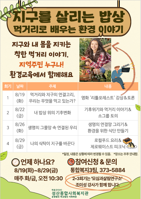 지역 주민 누구나 참여 가능합니다! 환경 교육에 여러분을 초대합니다!