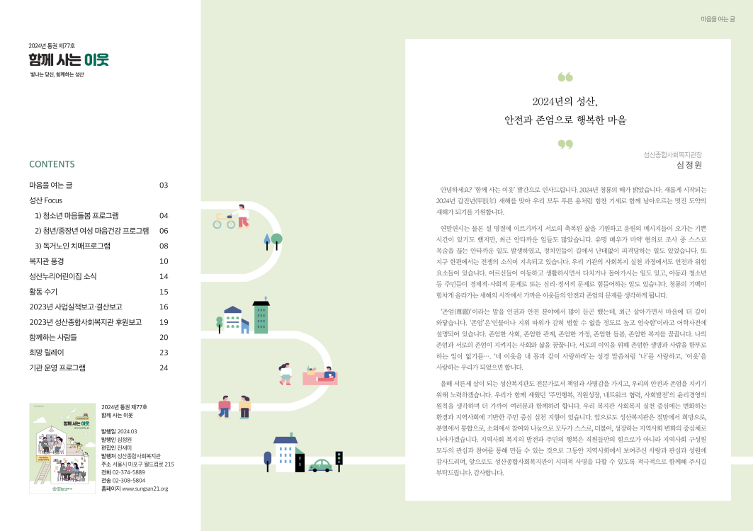 2024년 성산종합사회복지관 소식지 '함께 사는 이웃' 제77호를 공유합니다.